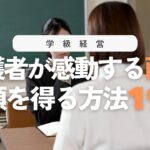 今回は、個人面談の教育的な特徴や、保護者と信頼関係を築くための19のポイント(事前の準備7選+当日の動き12選)について紹介しました。